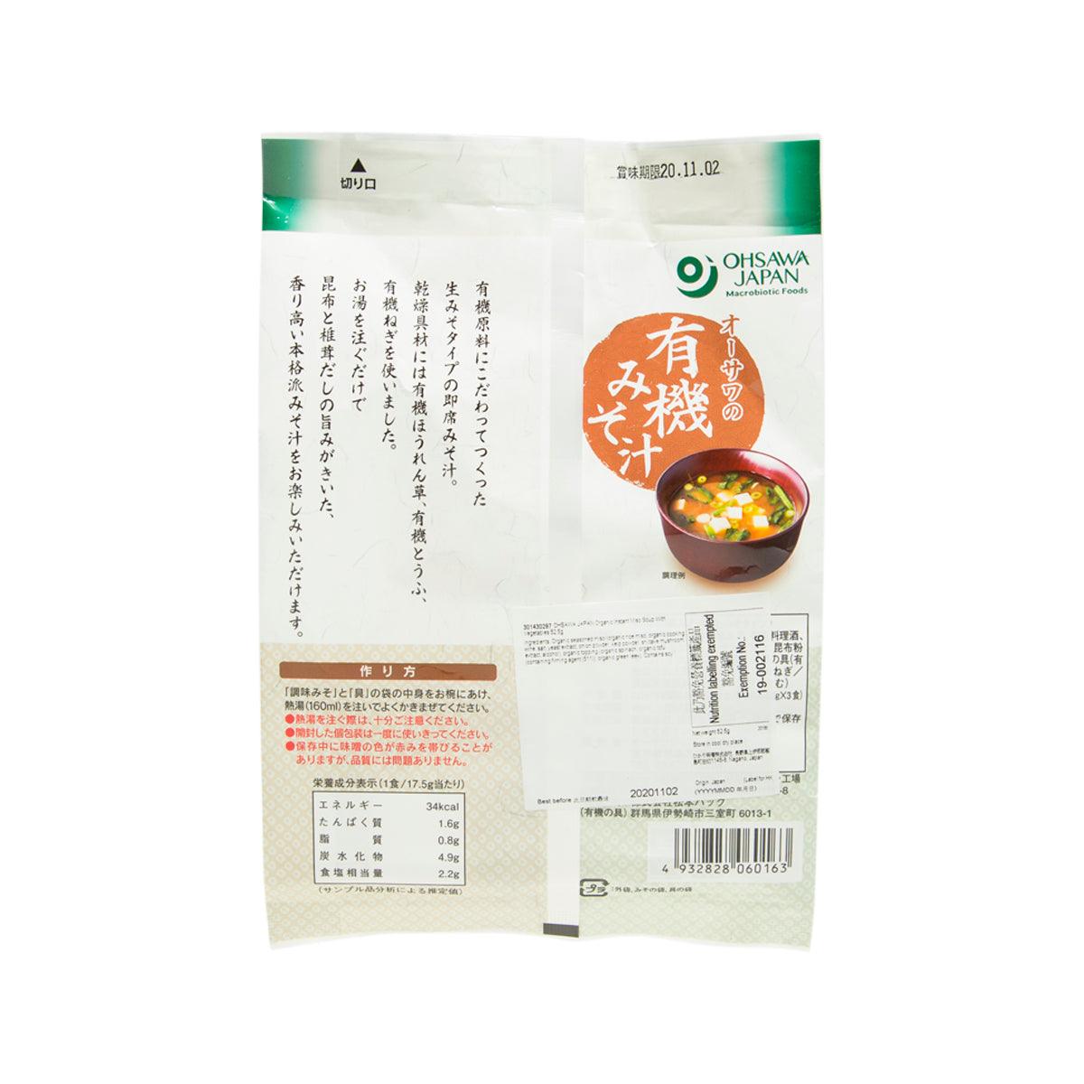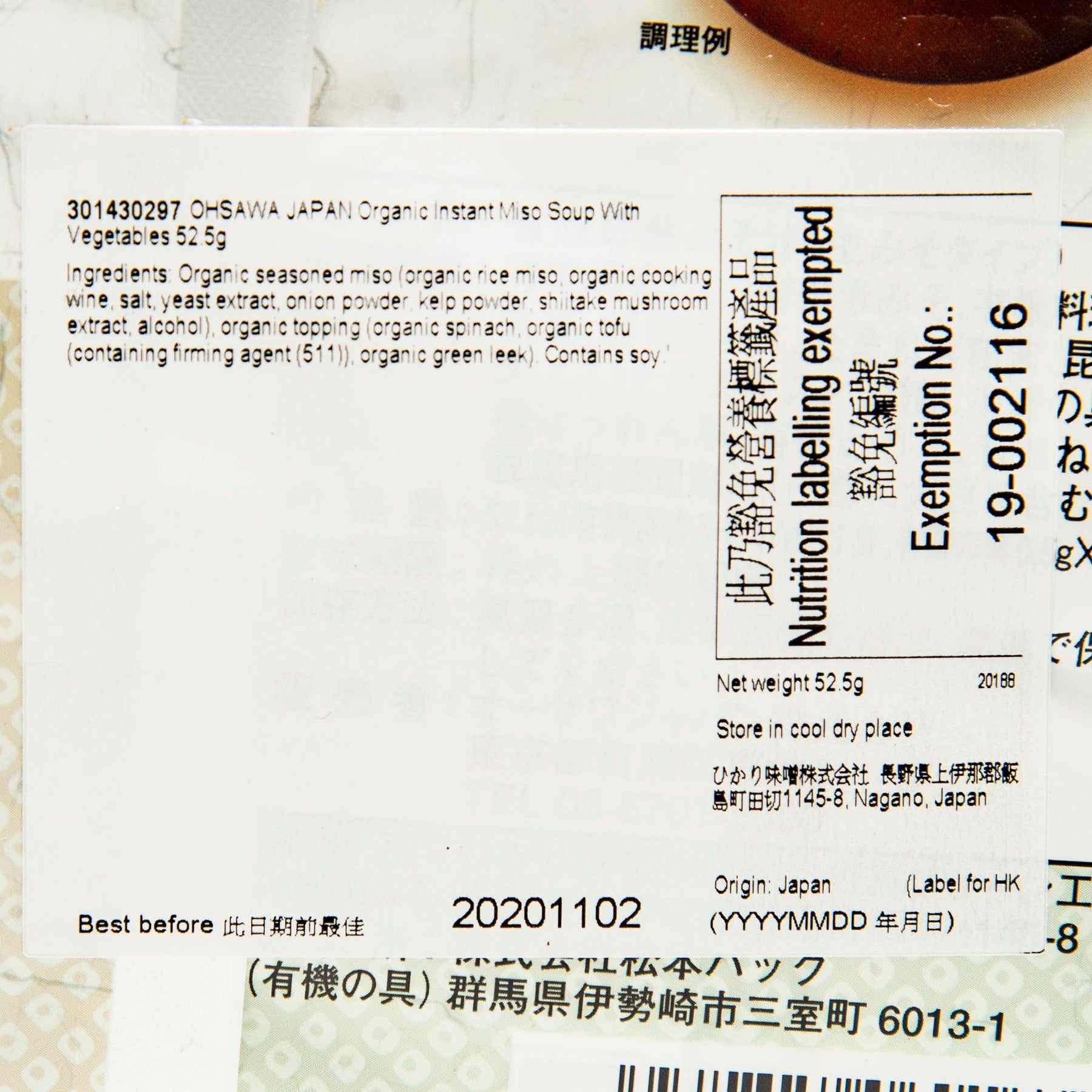 OHSAWA JAPAN Organic Instant Miso Soup with Vegetables (52.5g)