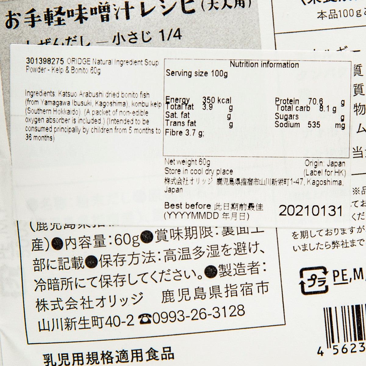 ORIDGE Natural Ingredient Soup Powder - Kelp & Bonito (60g)