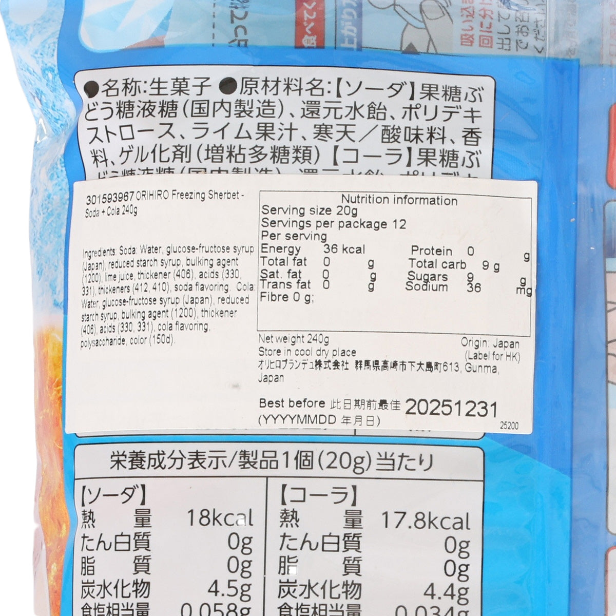 ORIHIRO Freezing Sherbet - Soda + Cola (240g)