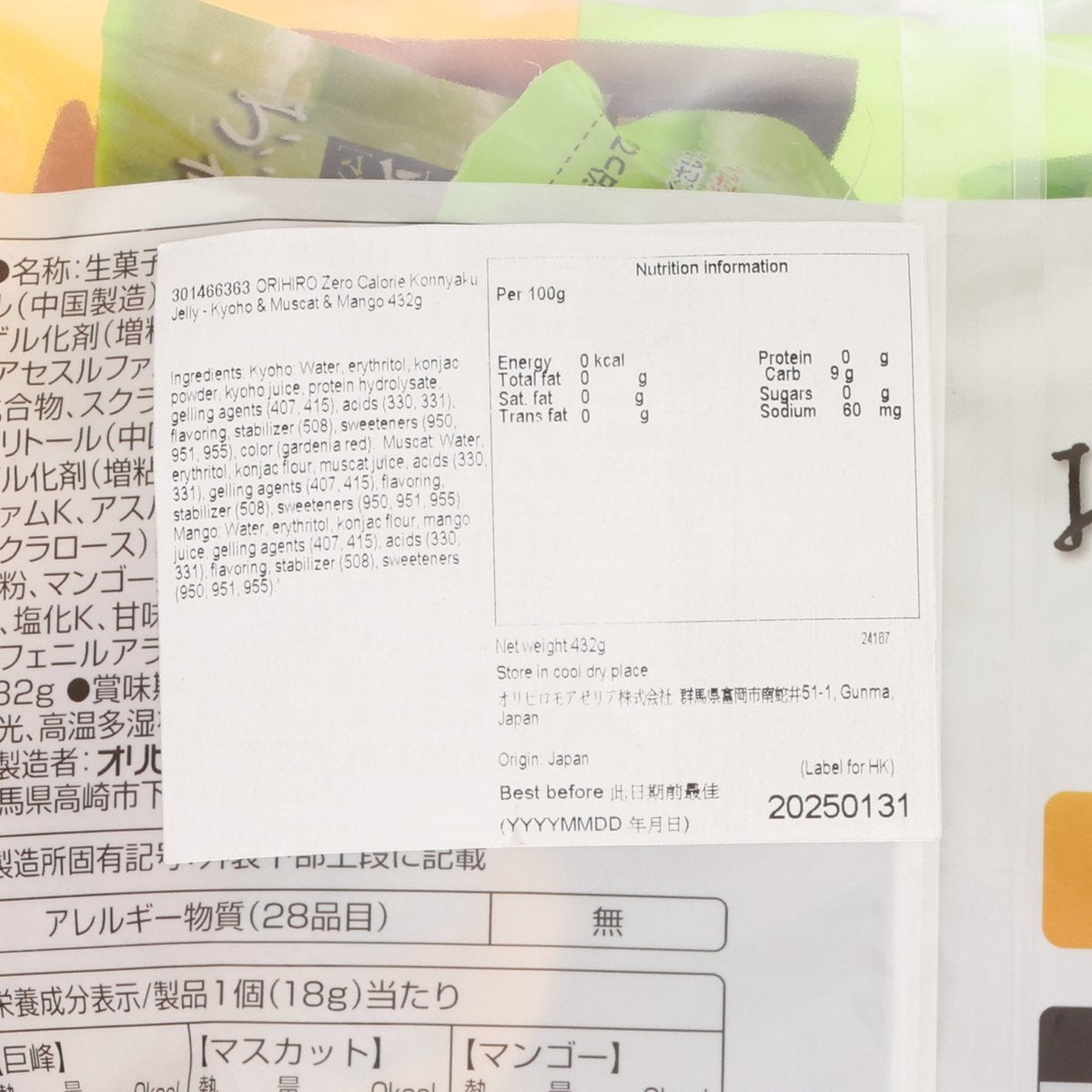ORIHIRO Zero Calorie Konnyaku Jelly - Kyoho & Muscat & Mango (432g)