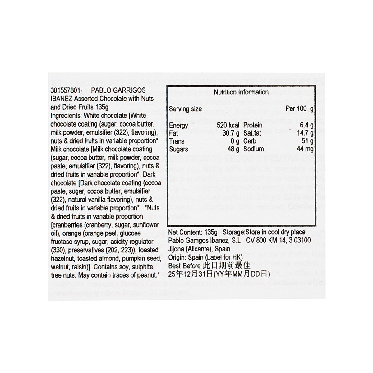 PABLO GARRIGOS IBANEZ Assorted Chocolate with Nuts and Dried Fruits (135g)