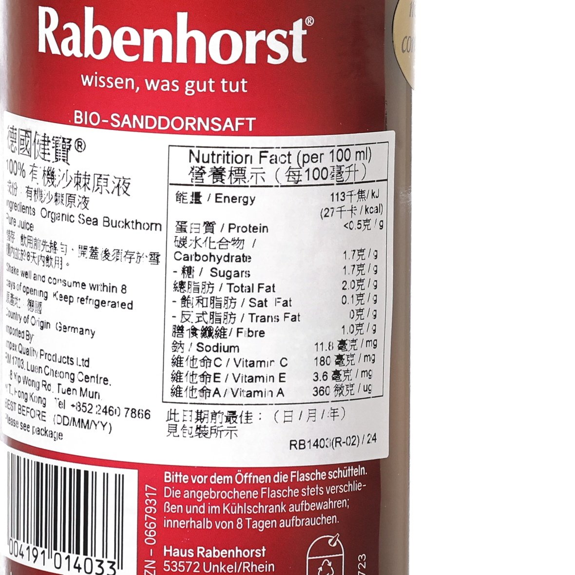 RABENHORST Organic 100% Sea Buckthorn Pure Juice (330mL)