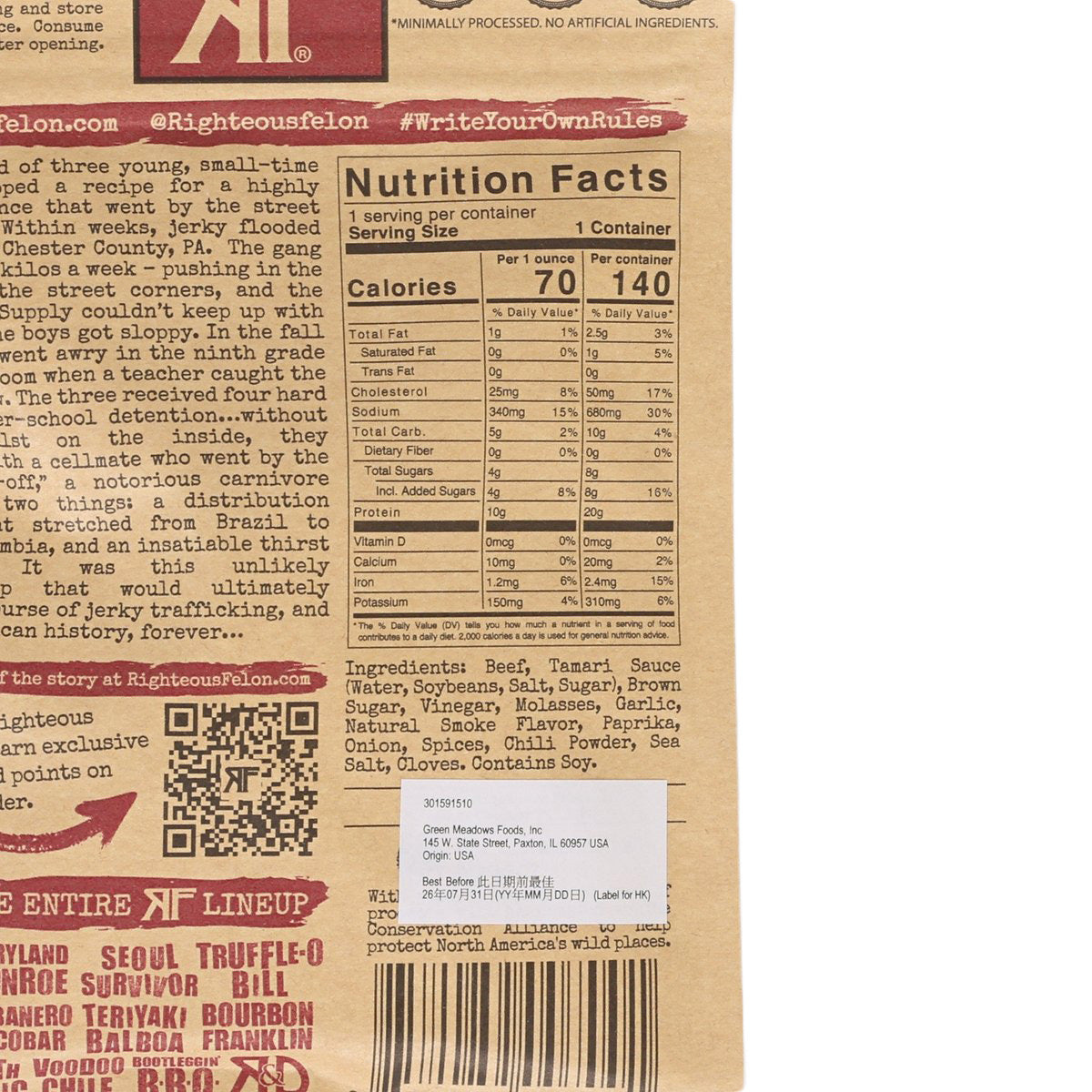 RIGHTEOUS FELON O.G. Hickory Beef Jerky  (56.7g)