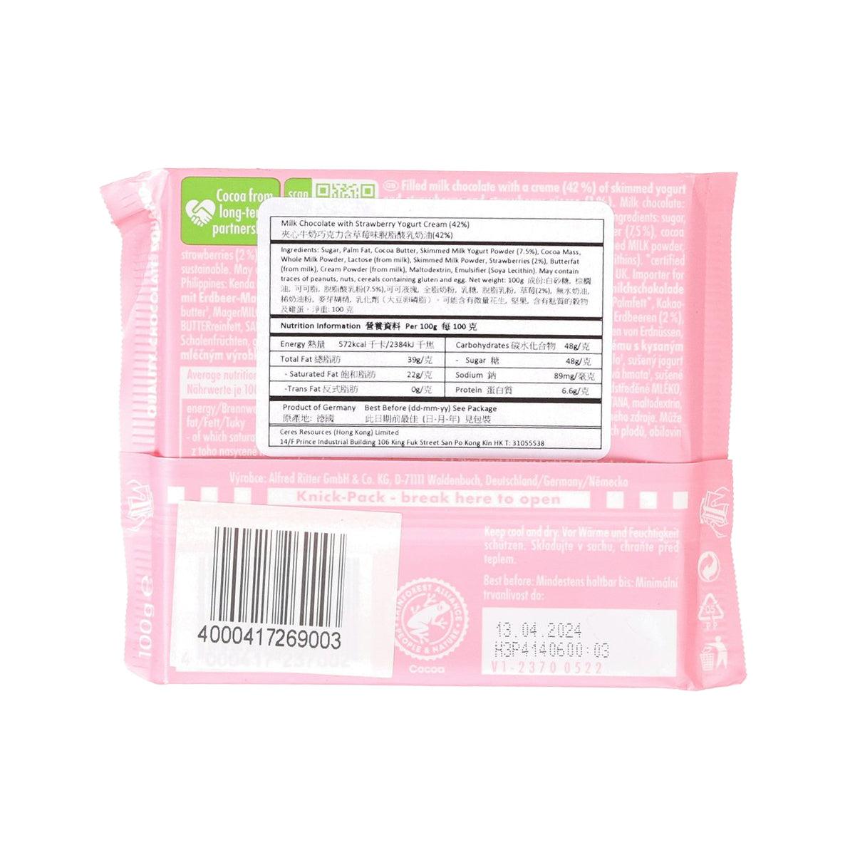 RITTER SPORT Milk Chocolate with Strawberry Yogurt Cream  (100g)