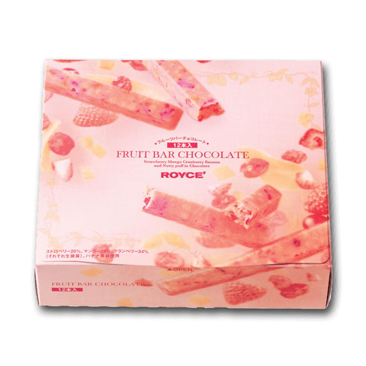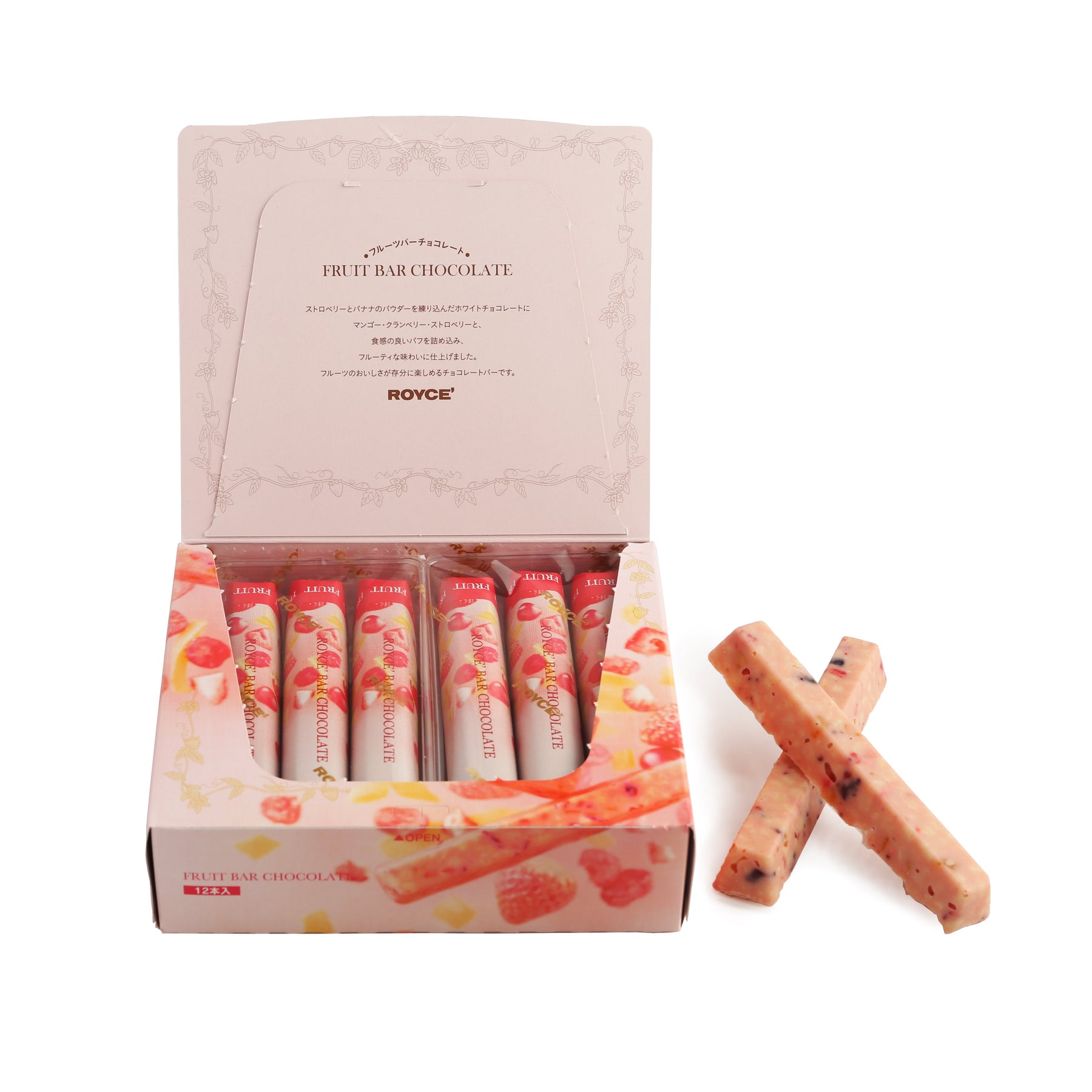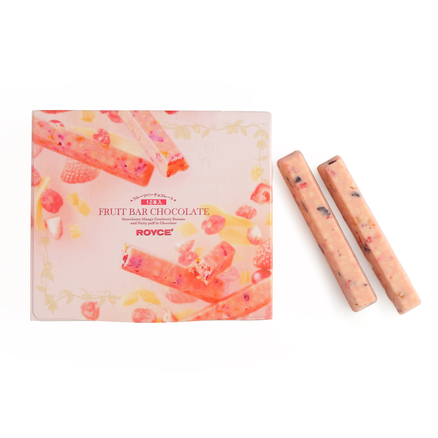 White chocolate mixed with powdered strawberries, three fruits, almond puff and given a touch of banana flavor.