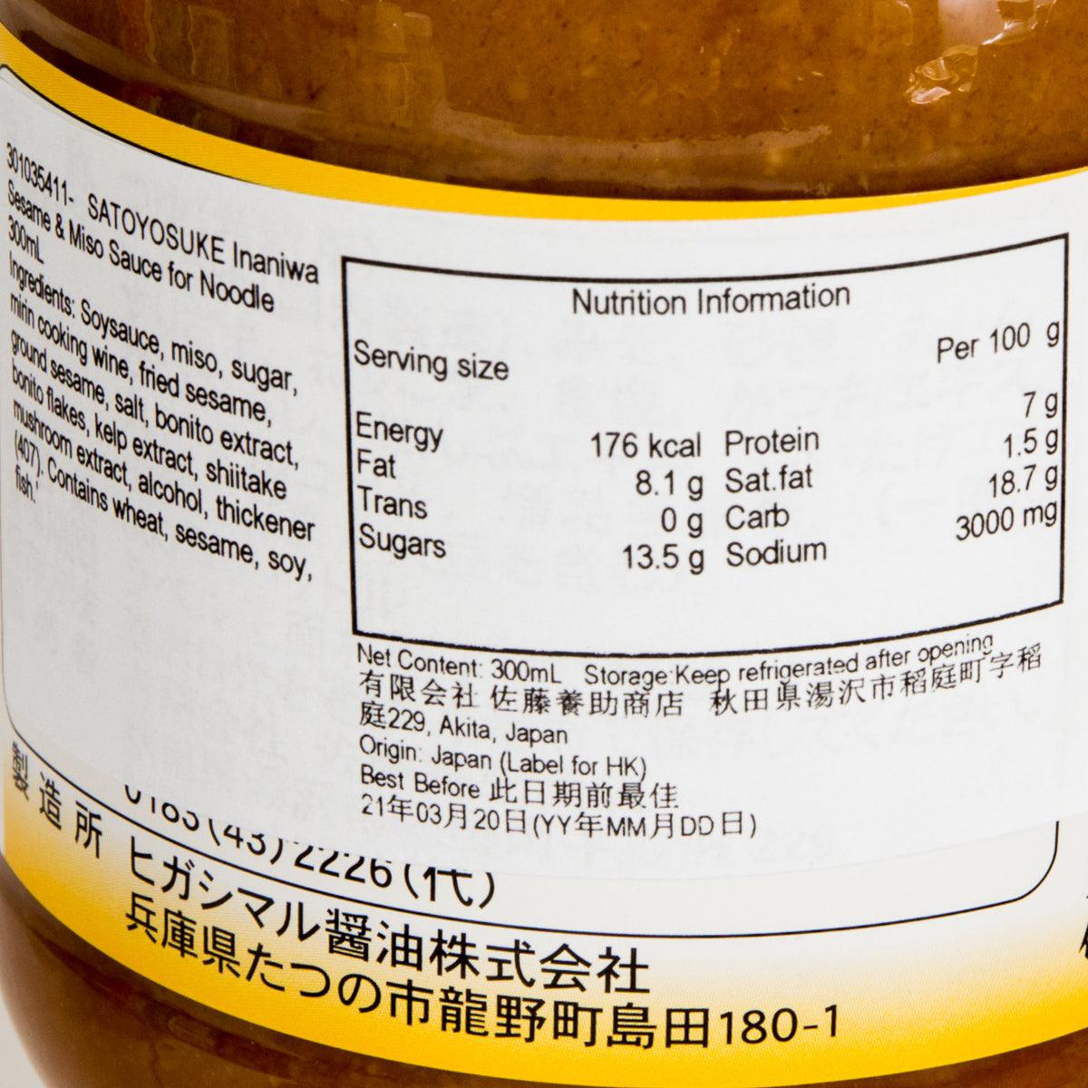 A rich and flavorful sesame miso sauce made with carefully selected bonito flakes, aromatic sesame, savory miso, and newly added walnuts. This is a 2x concentrated type. Dilute with water at a 1:1 ratio before use (e.g., 50ml sauce + 50ml water). Ideal for use as a dipping sauce for noodles.