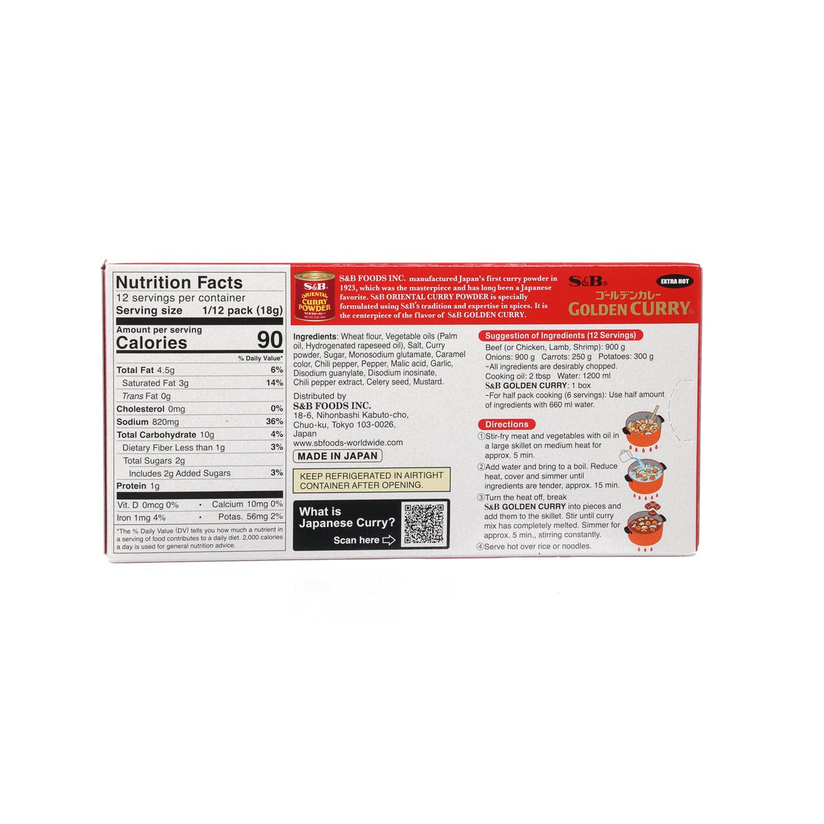 S&B Golden Curry Sauce Mix - Extra Hot [Eng] (220g)