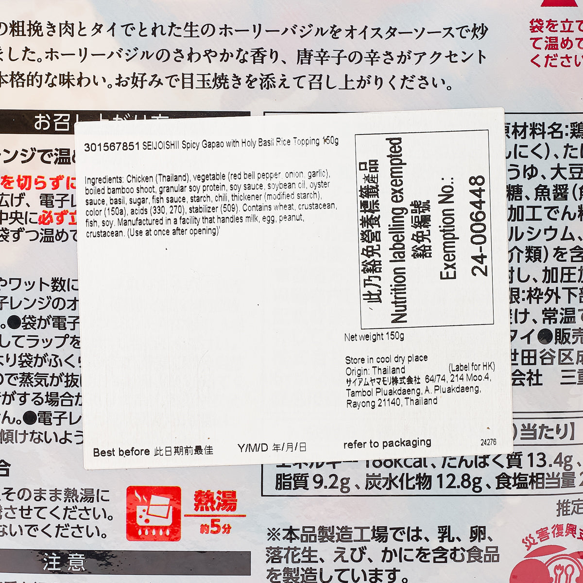 SEIJOISHII Spicy Gapao with Holy Basil Rice Topping (150g)
