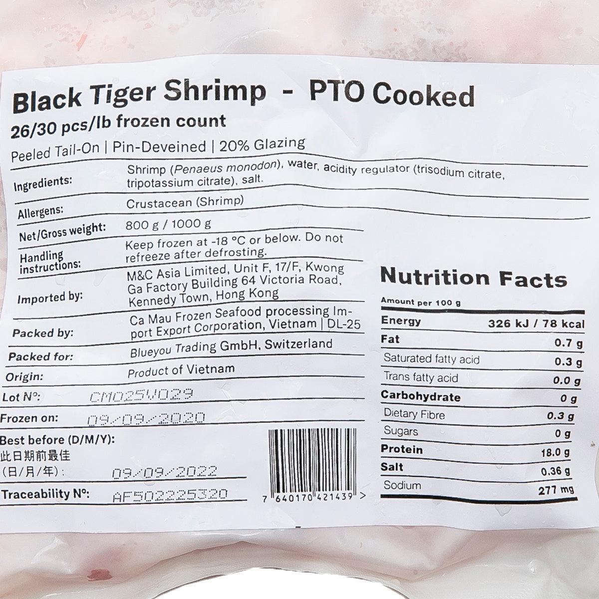 SELVA SHRIMP Vietnamese Frozen Cooked Black Tiger Prawn 26/30 (Tail On) - ASC  (800g)