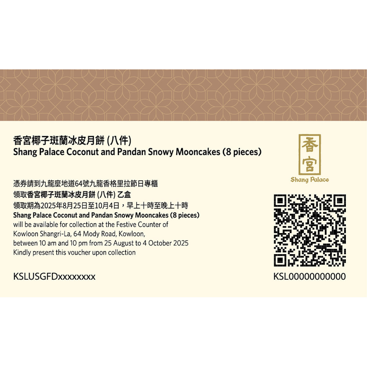 Shang Palace Coconut and Pandan Leaf Snow Skin Mooncake (8pcs) Voucher (1pc)