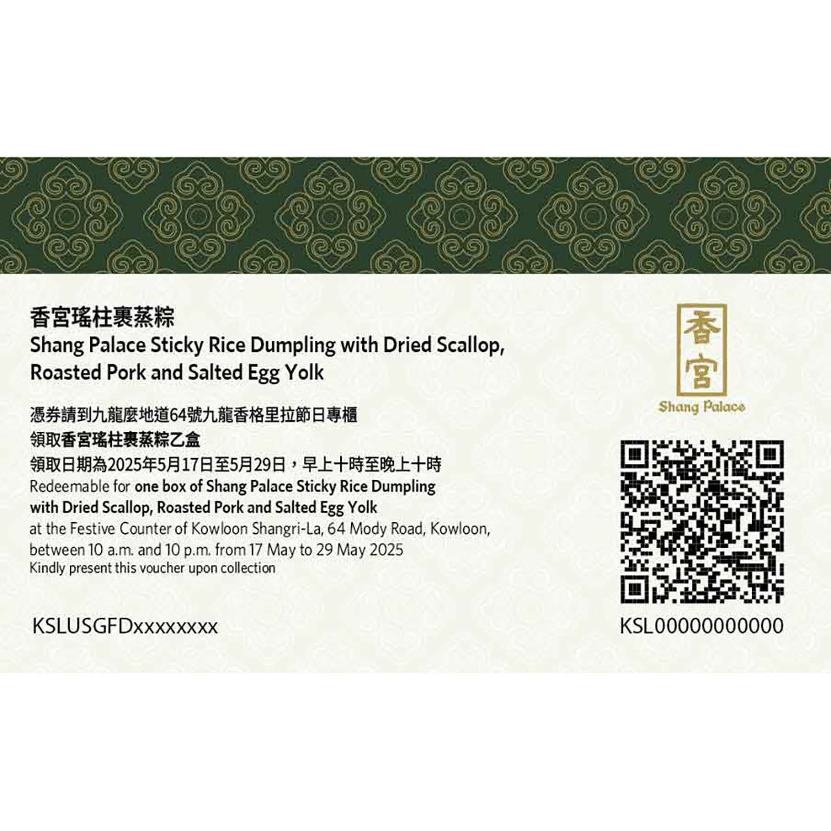 Shang Palace Sticky Rice Dumpling with Dried Scallop, Roasted Pork and Salted Egg Yolk Voucher (1pc)
