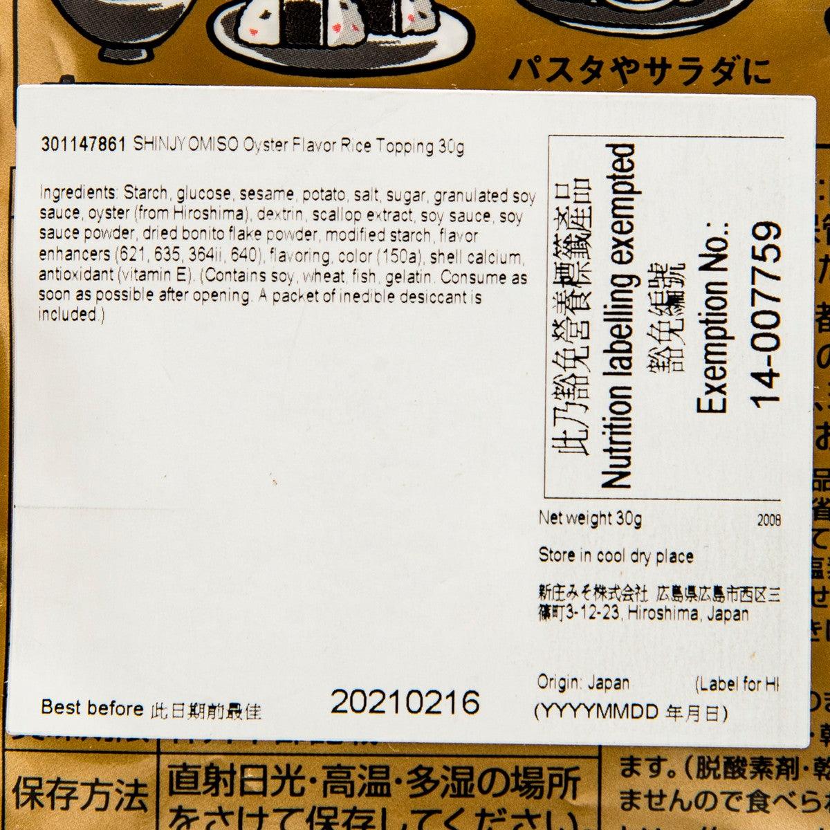 This rice topping is made with famous Hiroshima high-quality oysters, white sesame, black sesame and other materials, has the excellent umami flavour. It is good to be the topping of rice, noodles, or it can be used for making onigiri, or sprinkling on Tofu to enjoy. It is very versatile and you can create any delicious meal with a touch of umami based on your imagination.
