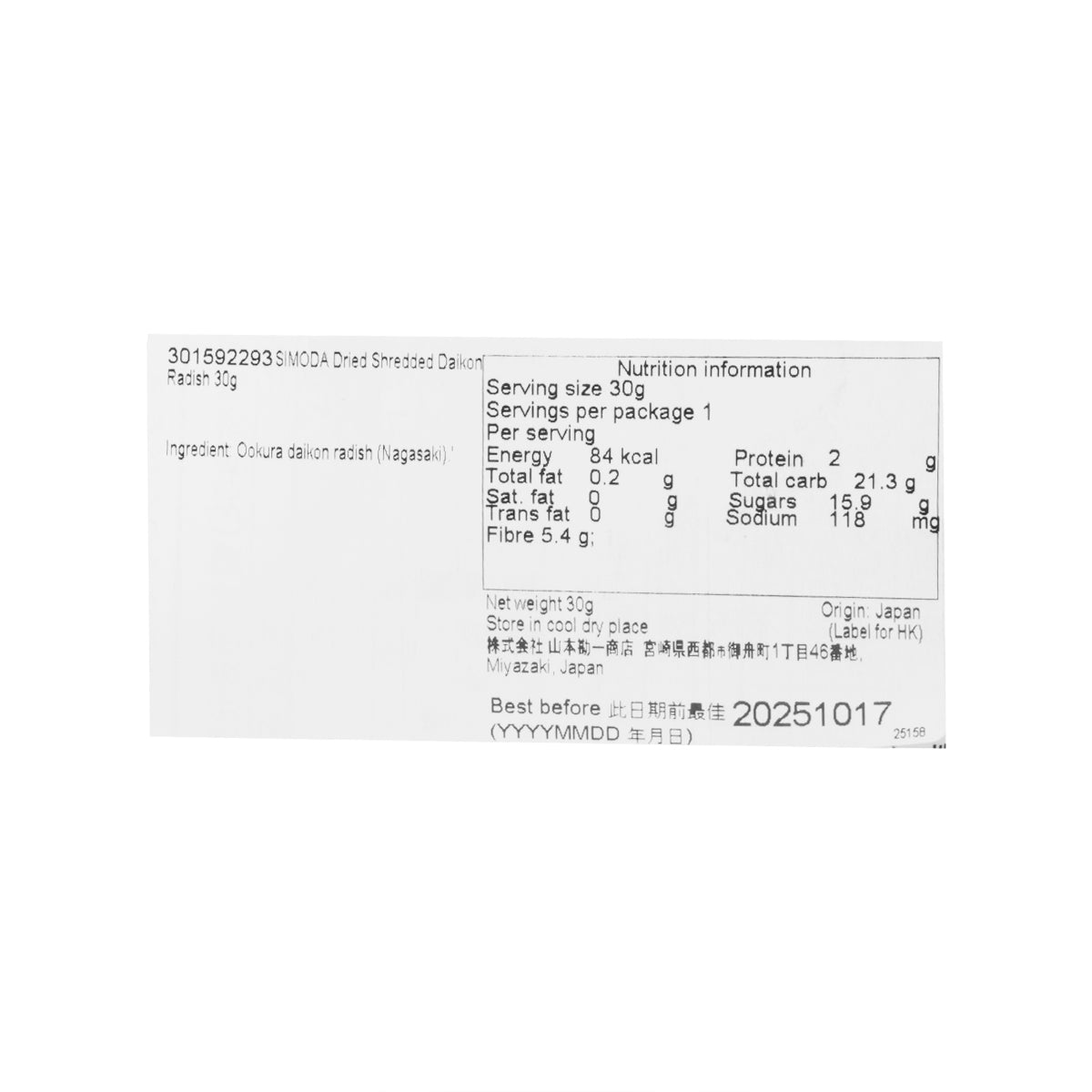 SIMODA Dried Shredded Daikon Radish (30g)