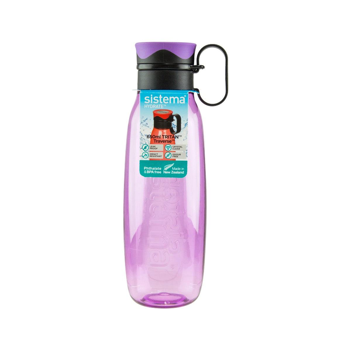 - Designed and made in New Zealand, this 650mL SISTEMA Tritan Traverse Bottle has an effortless screw top lid with easy flow opening. It has a built-in loop designed to hold the lid and can also be used as a carry handle. Perfect for school, work, sports and picnics to keep hydrated on the go. This product is dishwasher safe (on the top rack).