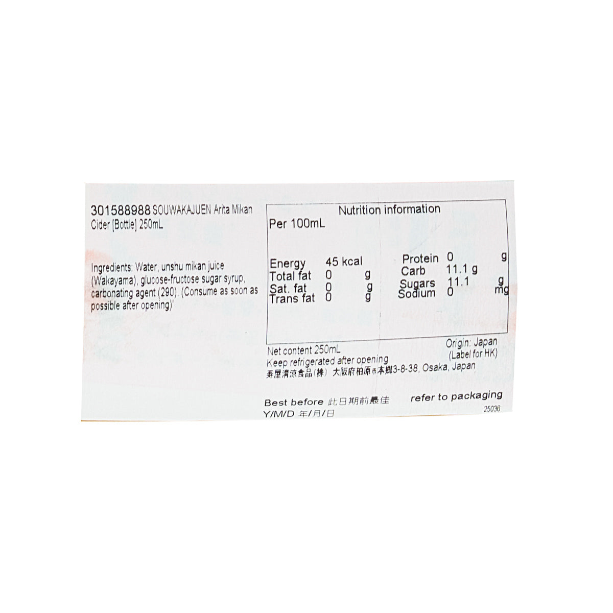 SOUWAKAJUEN Arita Mikan Cider [Bottle]  (250mL)