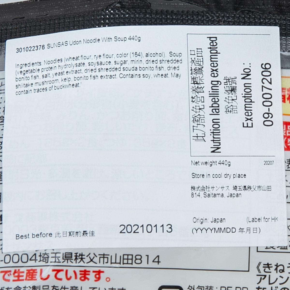 SUNSAS Udon Noodle with Soup (440g)