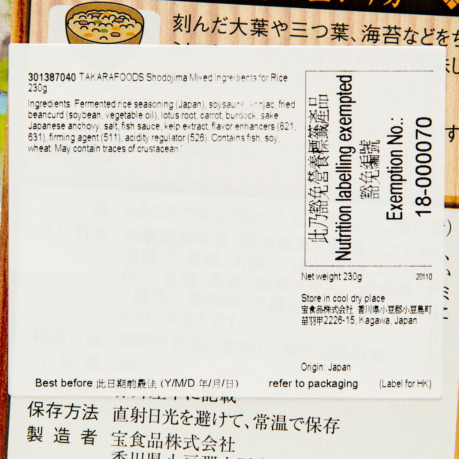 This TAKARAFOODS Shodojima Mixed Ingredients for Rice, is made with soy sauce produced at Shodoshima, konjac, carrot, burdock and other ingredients, you can just add into the rice and cook together, creating a delicious Japanese meal so easy!