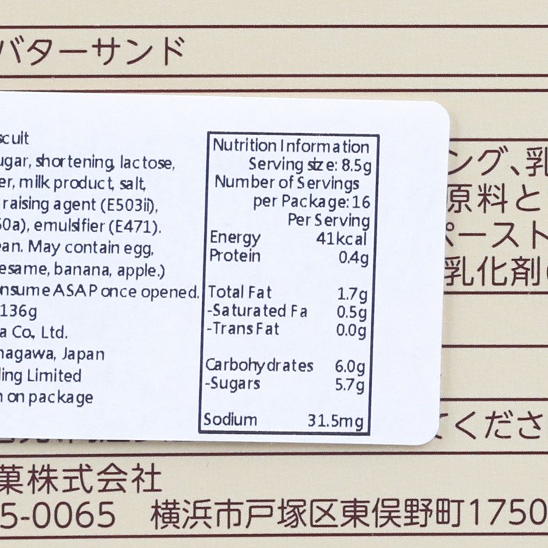 TAKARASEIKA Yokohama Butter Cream Sandwich Biscuits Box (136g)