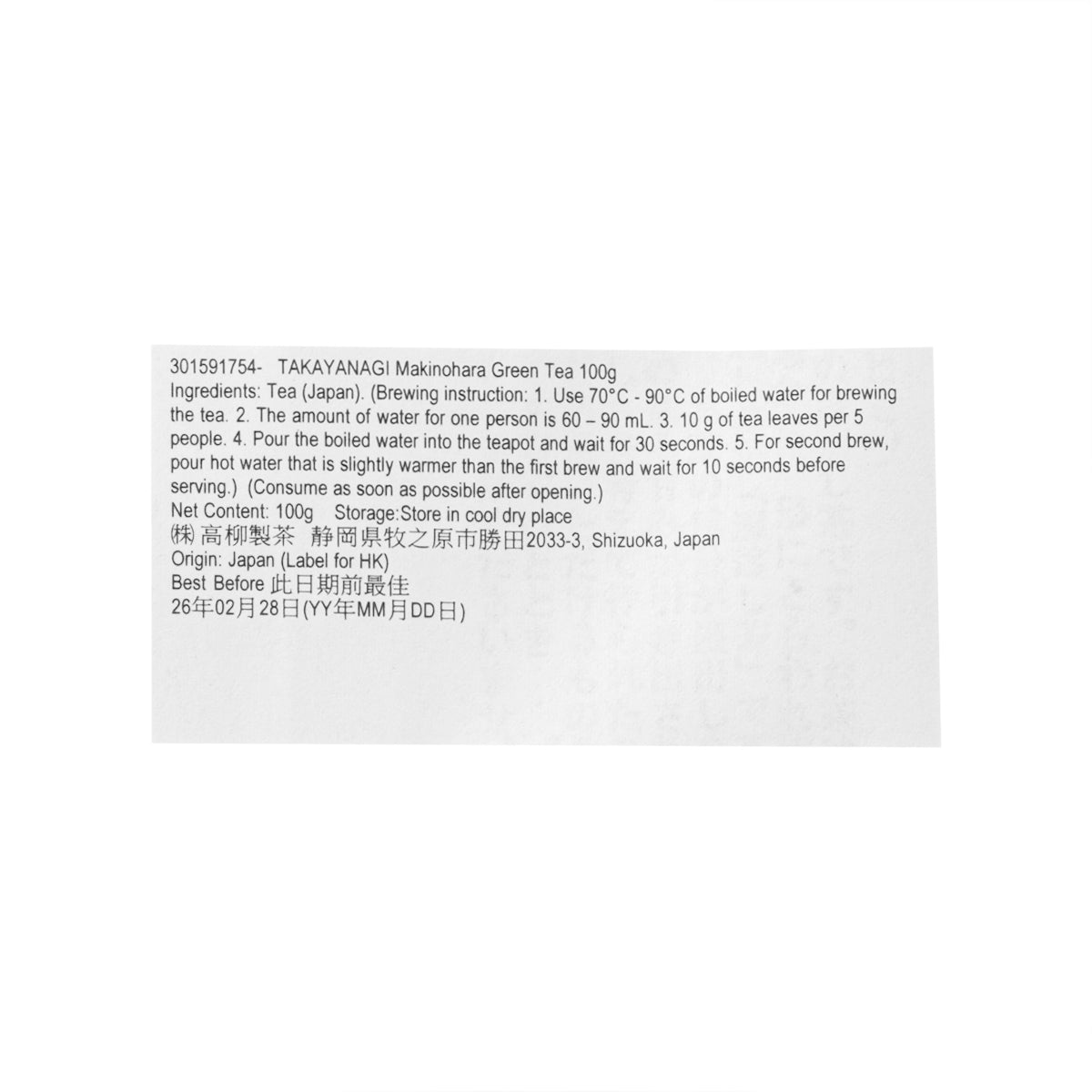 TAKAYANAGI Makinohara Green Tea (100g)