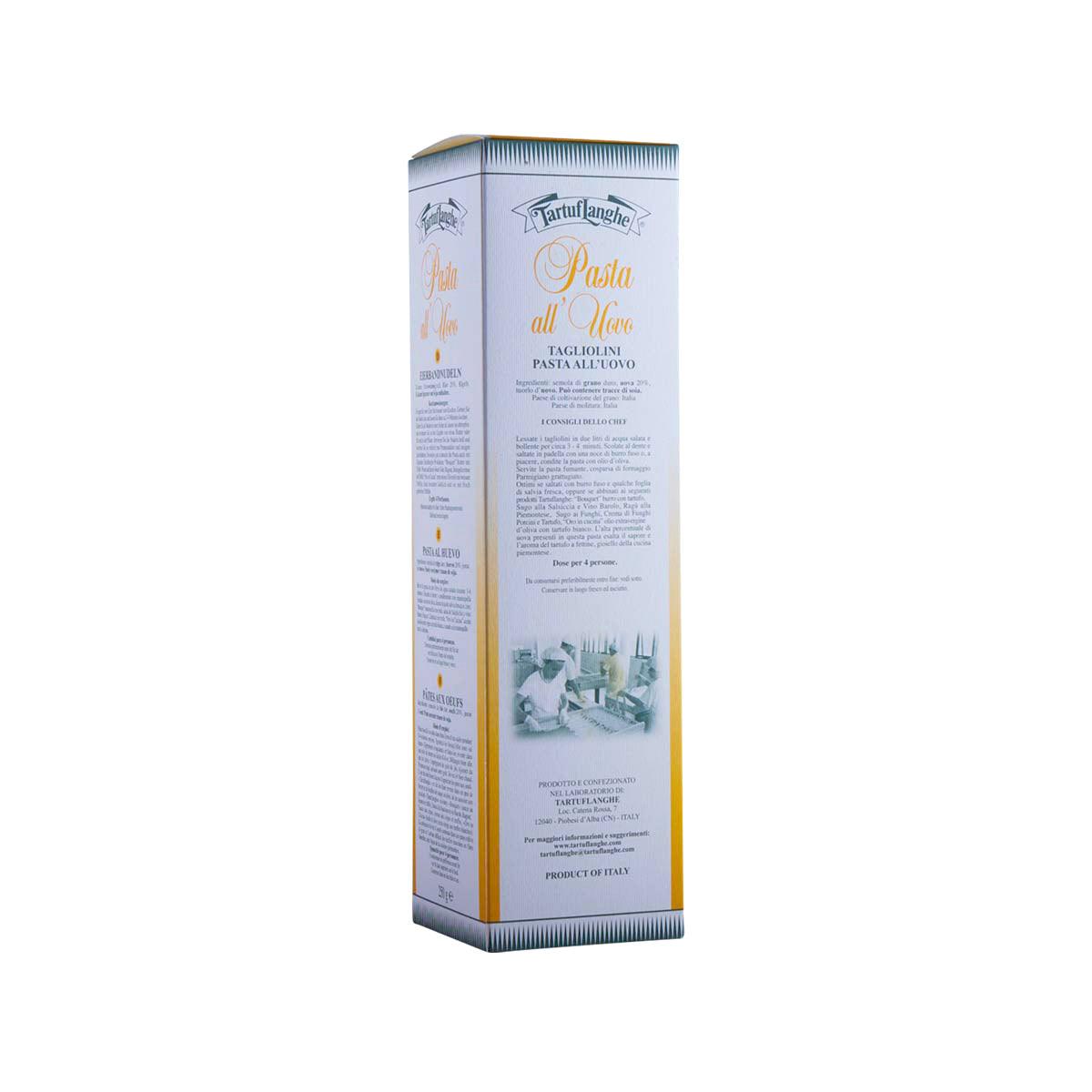 This TARTUFLANGHE Tagliolini Egg Pasta is produced through a real 100% artisan process, bronze die extruded, cut using a knife and laid down on wooden frames for drying. A pasta with perfect consistency and an unmistakable taste, it is excellent if combined with melted butter and some leaves of fresh sage, or Mushrooms sauce.