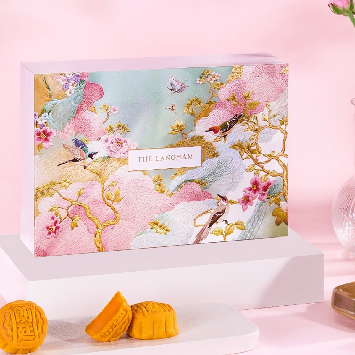 • The Langham, Hong Kong three-MICHELIN-starred T’ang Court’s classic Mini Custard with Egg Yolk Mooncake combines velvety custard and golden egg yolk. The mooncakes are presented in a limited-edition wooden box inspired by intricate embroidery, showcasing a vibrant scene with flowers and graceful birds, making it the perfect luxurious gift for the Mid-Autumn Festival.