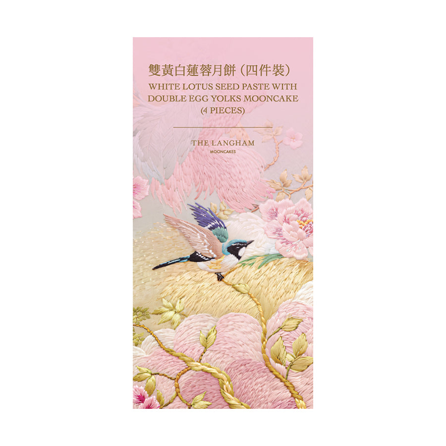 • The Langham, Hong Kong three-MICHELIN-starred T’ang Court’s classic White Lotus Seed Paste with Double Egg Yolks Mooncake combines creamy lotus seed sweetness with the rich, savoury notes of double egg yolks. The mooncakes are presented in a lavish jewellery box inspired by intricate embroidery, showcasing a vibrant scene with flowers and graceful birds. The meticulous details bring the box to life, reminiscent of a traditional Chinese painting slowly unfolding.