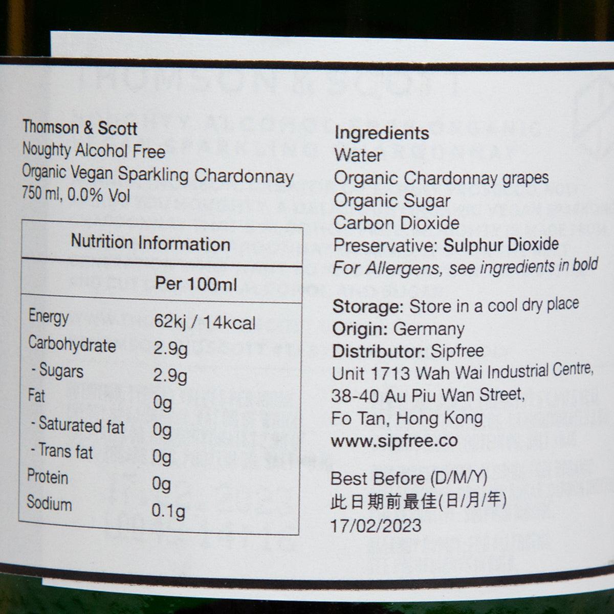 THOMSON & SCOTT Noughty Alcohol-Free Organic Sparkling Chardonnay (750mL)