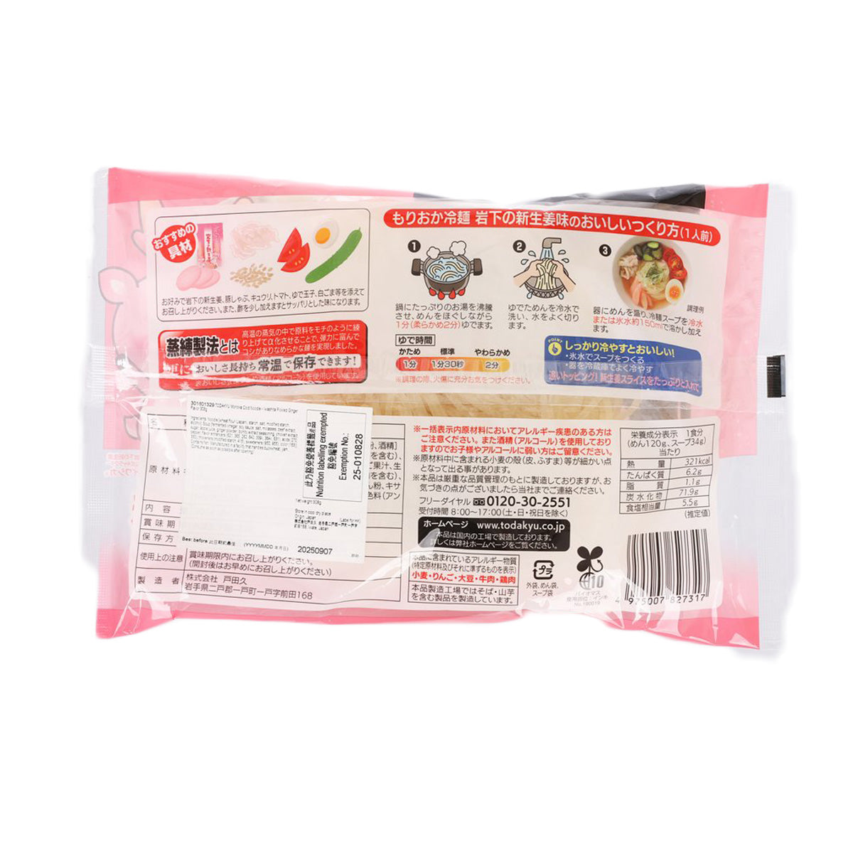 TODAKYU Morioka Cold Noodle - Iwashita Pickled Ginger Flavor (308g)