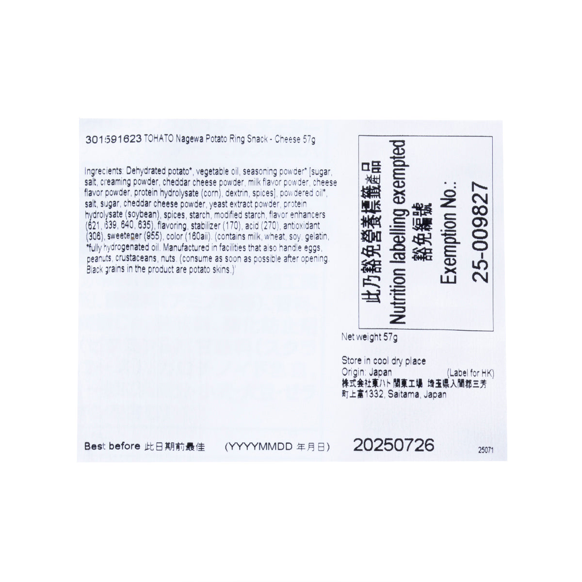 TOHATO Nagewa Potato Ring Snack - Cheese (57g)