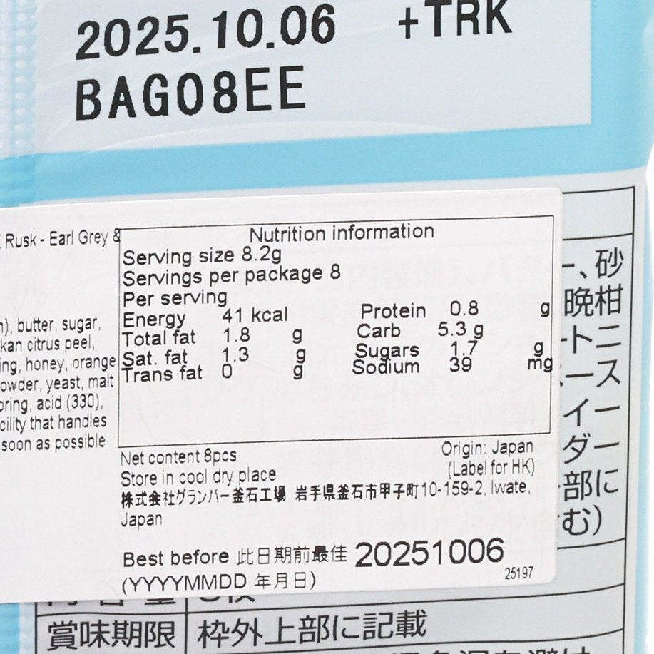 TOKYORUSK Rusk - Earl Grey & Juicy Orange (8pcs)