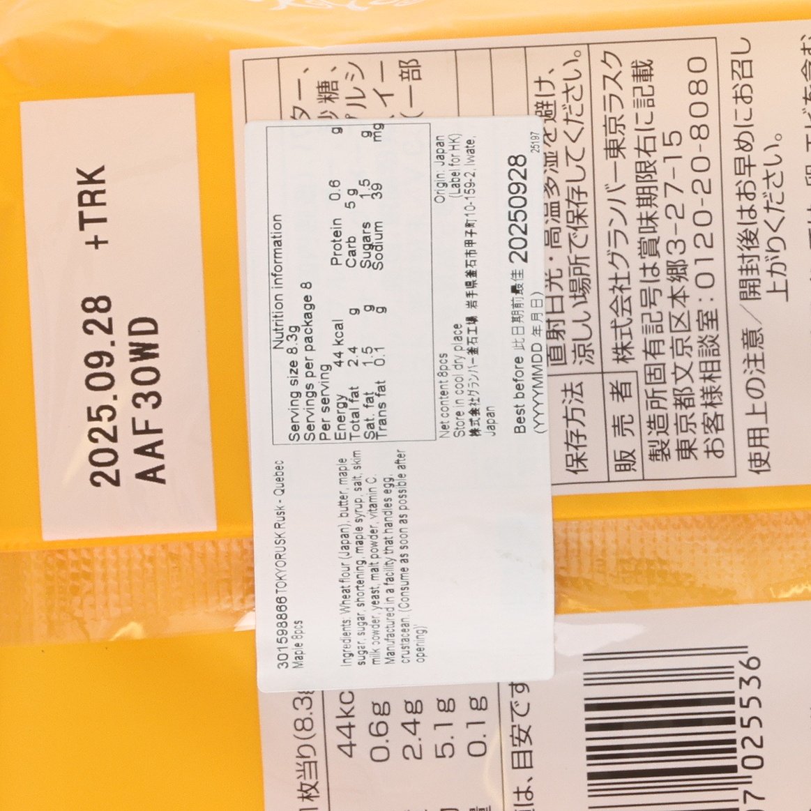 TOKYORUSK Rusk - Quebec Maple (8pcs)