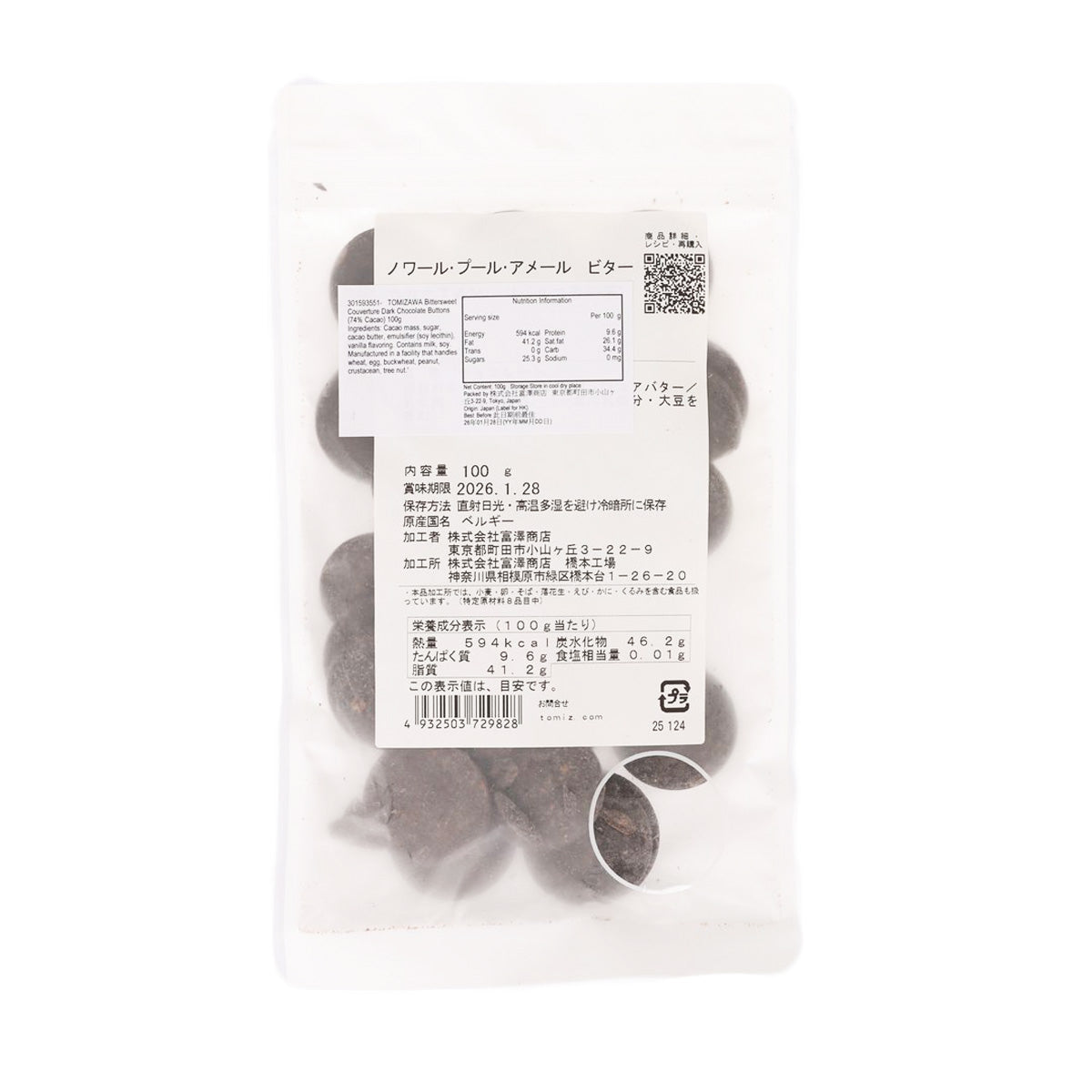 TOMIZAWA Bittersweet Couverture Dark Chocolate Buttons (74% Cacao) (100g)