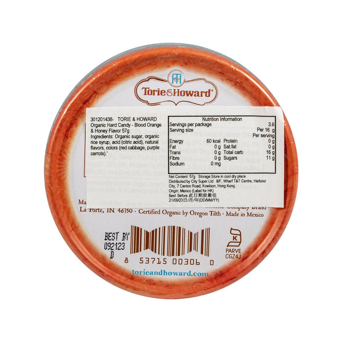 TORIE & HOWARD Organic Hard Candy - Blood Orange & Honey Flavor (57g)