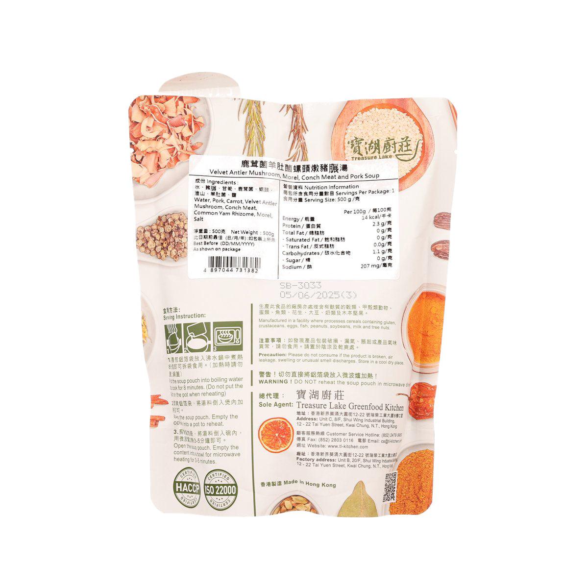 TREASURE LAKE GREENFOOD KITCHEN Velvet Antler Mushroom, Morel, Conch Meat and Pork Soup (500g)