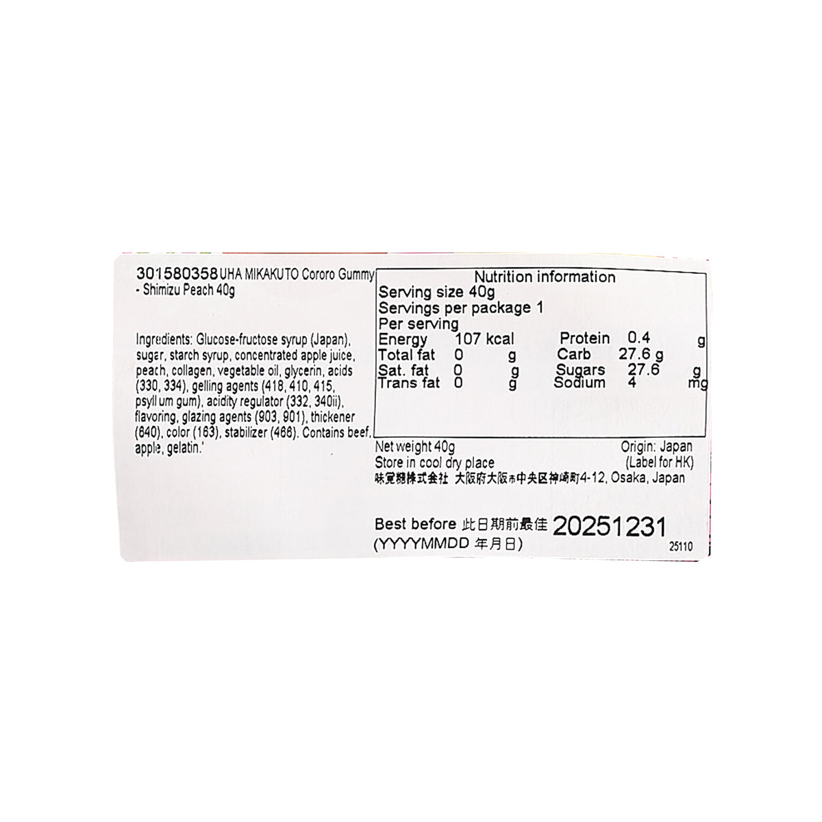 UHA MIKAKUTO Cororo Gummy - Shimizu Peach (40g)