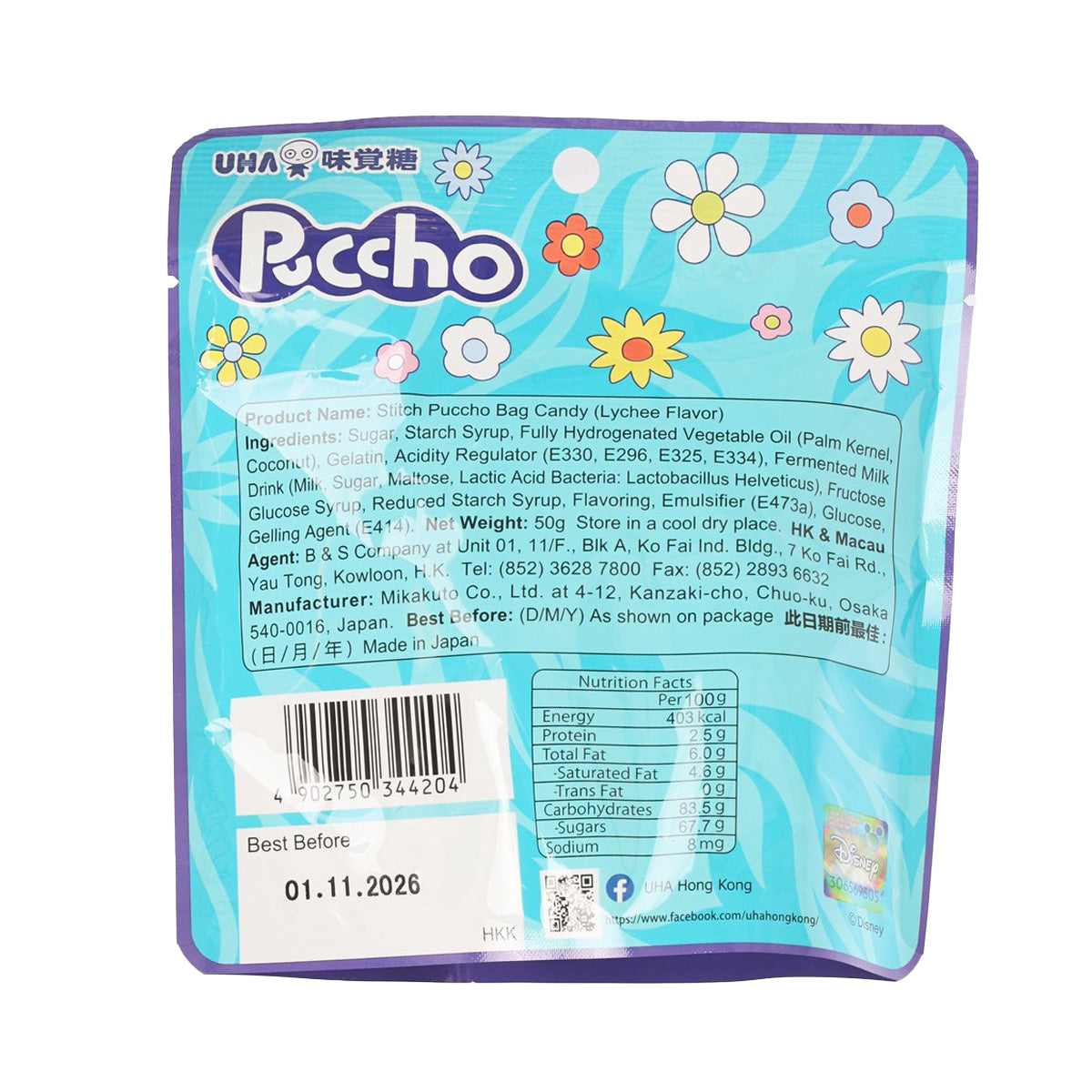 UHA MIKAKUTO Stitch Puccho Bag Candy - Lychee Flavor (50g)