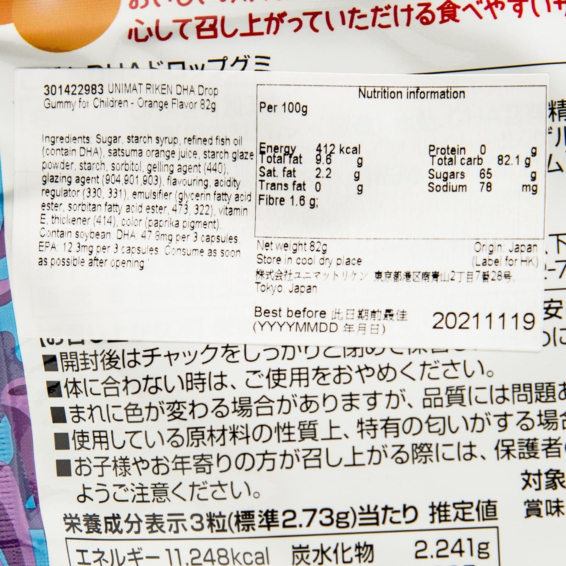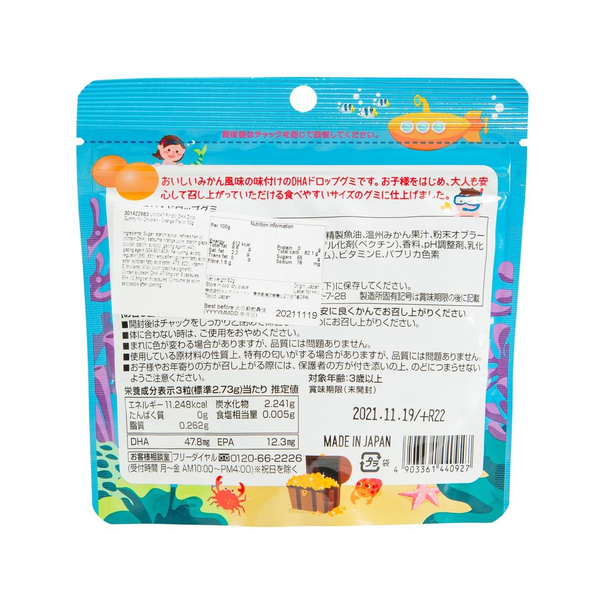 UNIMAT RIKEN DHA + Vitamin D Drop Gummy for Children - Peach Flavor (60pcs)