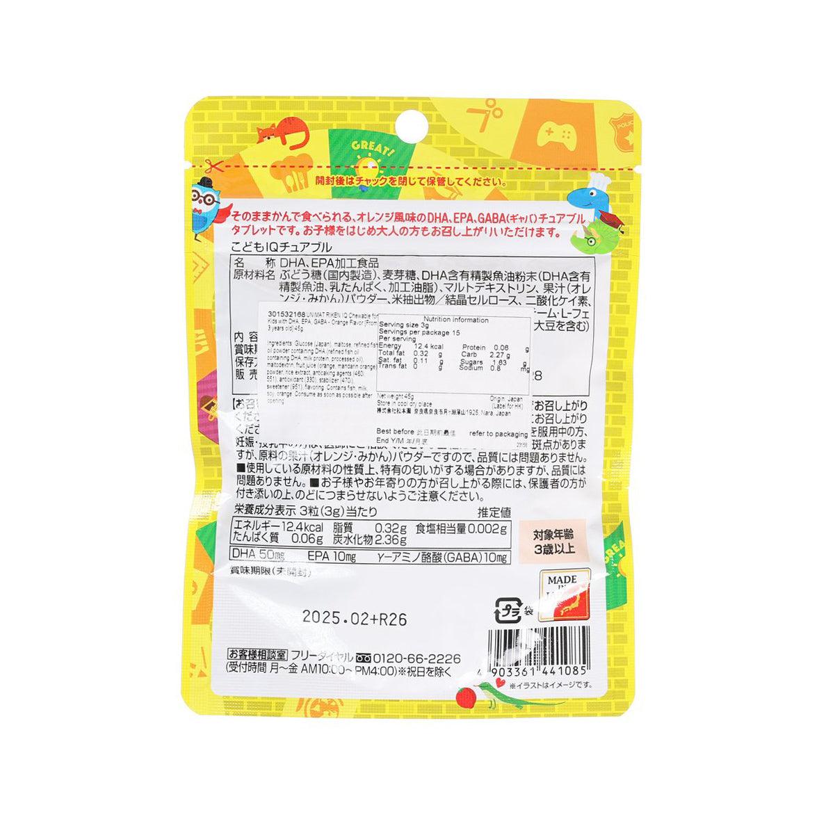 UNIMAT RIKEN IQ Chewable for Kids with DHA, EPA, GABA - Orange Flavor [From 3 years old] (45g)