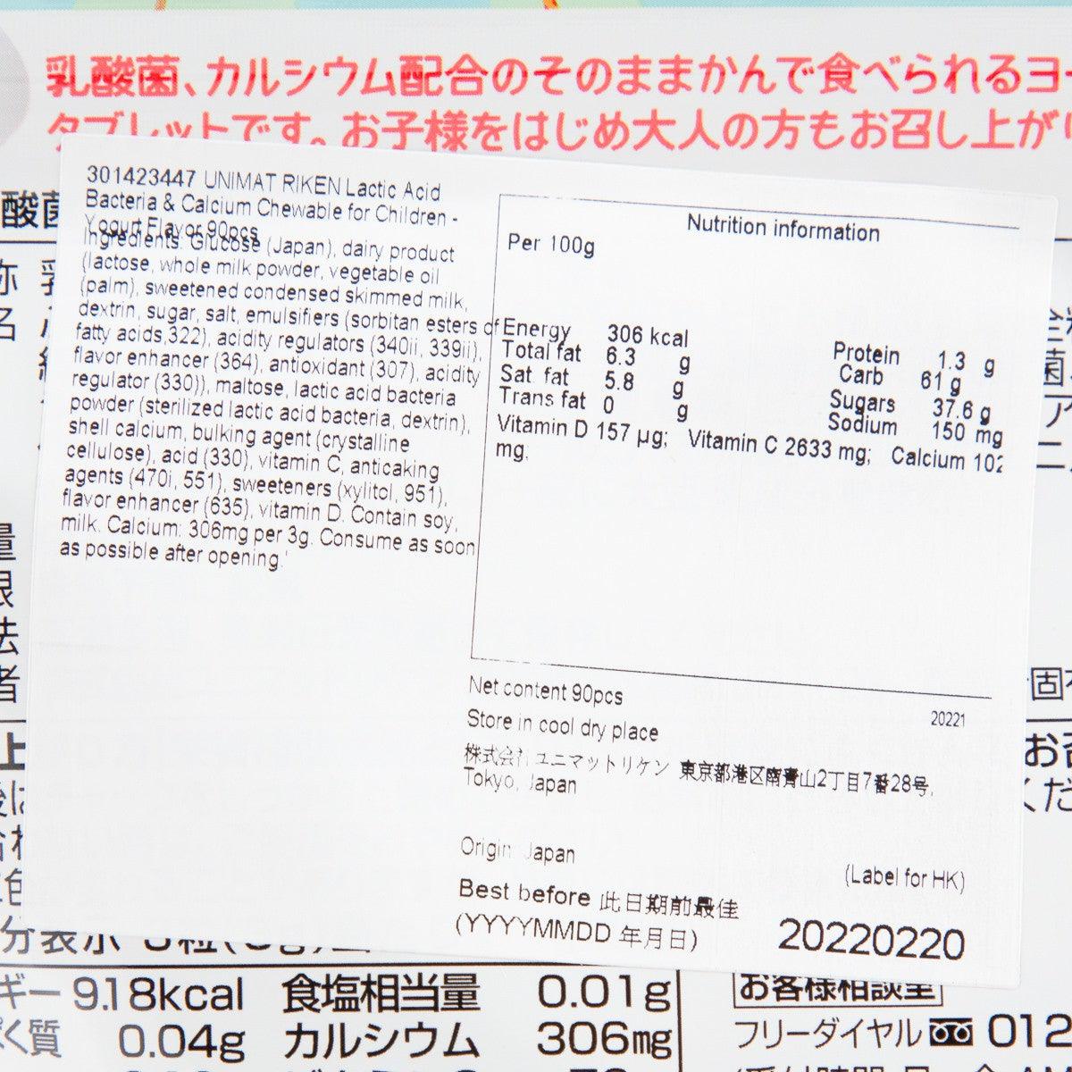 UNIMAT RIKEN Lactic Acid Bacteria & Calcium Chewable for Children - Yogurt Flavor (90pcs)
