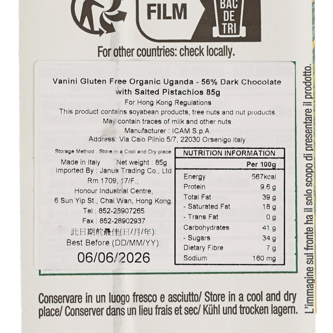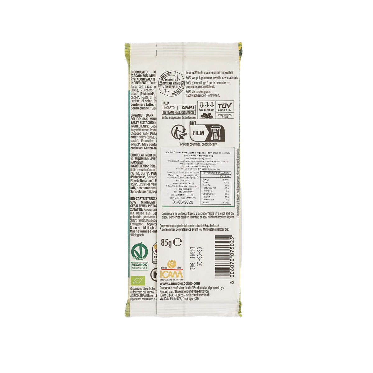 VANINI Organic Uganda Dark Chocolate with Salted Pistachio (85g)