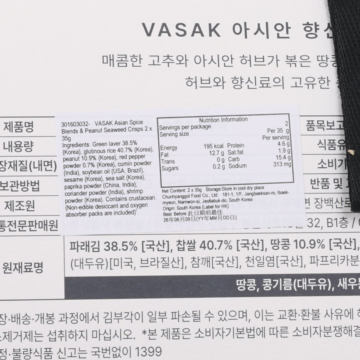 VASAK Asian Spice Blends & Peanut Seaweed Crisps (2 x 35g)