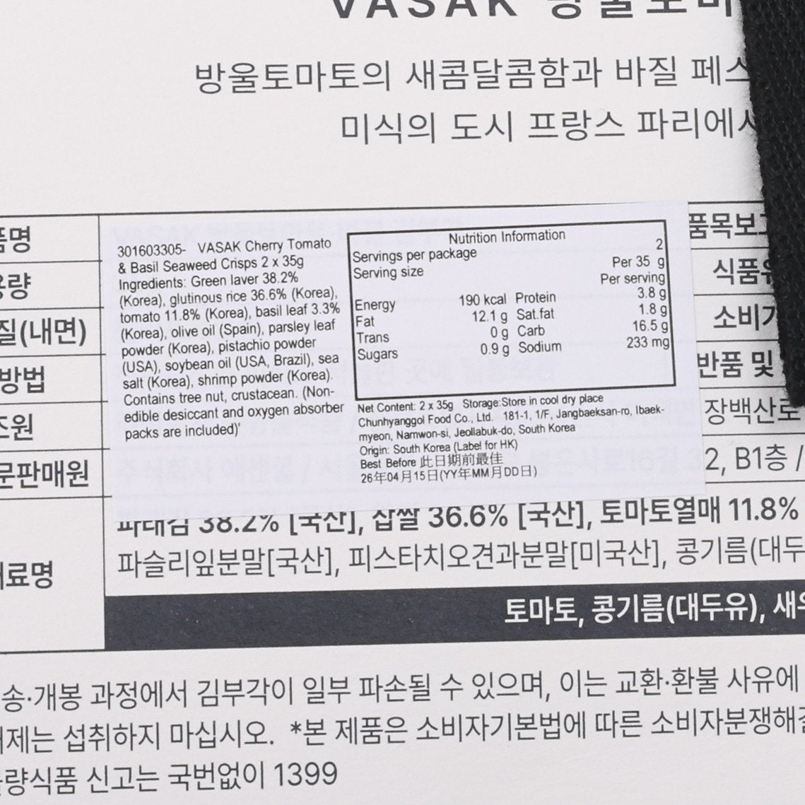 VASAK Cherry Tomato & Basil Seaweed Crisps (2 x 35g)
