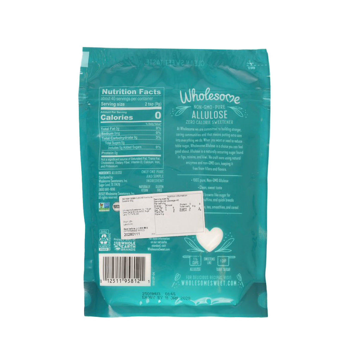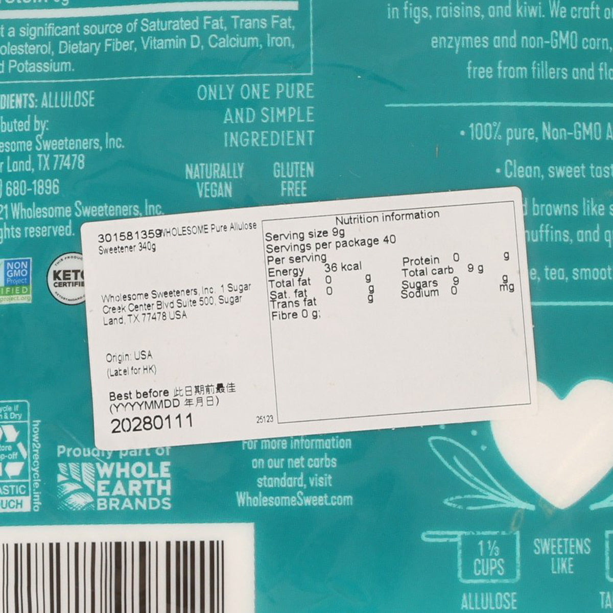 WHOLESOME SWEETENERS Pure Allulose Sweetener (340g)
