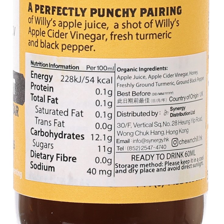 WILLY’S Organic Turmeric Shot with Apple Cider Vinegar [Bottle] (60mL)