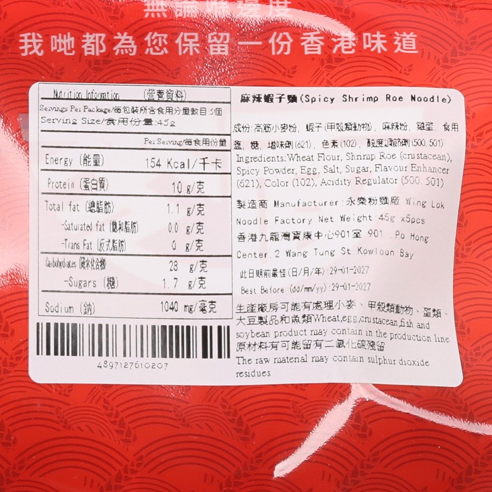 WING LOK Spicy Shrimp Roe Noodle (5 x 45g)