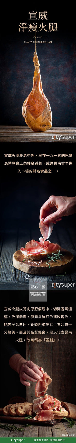 Xuanwei boneless ham is well-known in China and abroad. It won the gold medal at the Panama Exposition in 1915 and became one of the first famous and special foods to enter the market in Yunnan Province. Xuanwei boneless ham has thin skin, thick meat and moderate fatness and leanness. When cut, it has a strong aroma and bright color. The lean meat is bright red or rose, the fat is milky white, and the bones are slightly pink, making it look delicious. And its quality is good enough to represent Yunnan ham, so it is often called "Yunnan ham".
