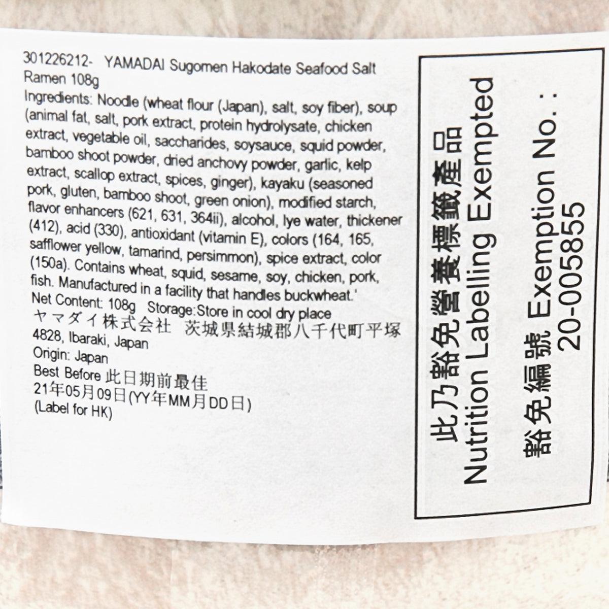 YAMADAI Sugomen Hakodate Seafood Salt Ramen (108g)