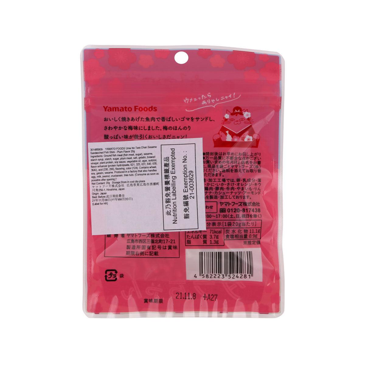 YAMATO FOODS Ume No Tara Chan Sesame Sandwiched Fish Stick - Plum Flavor (16g)