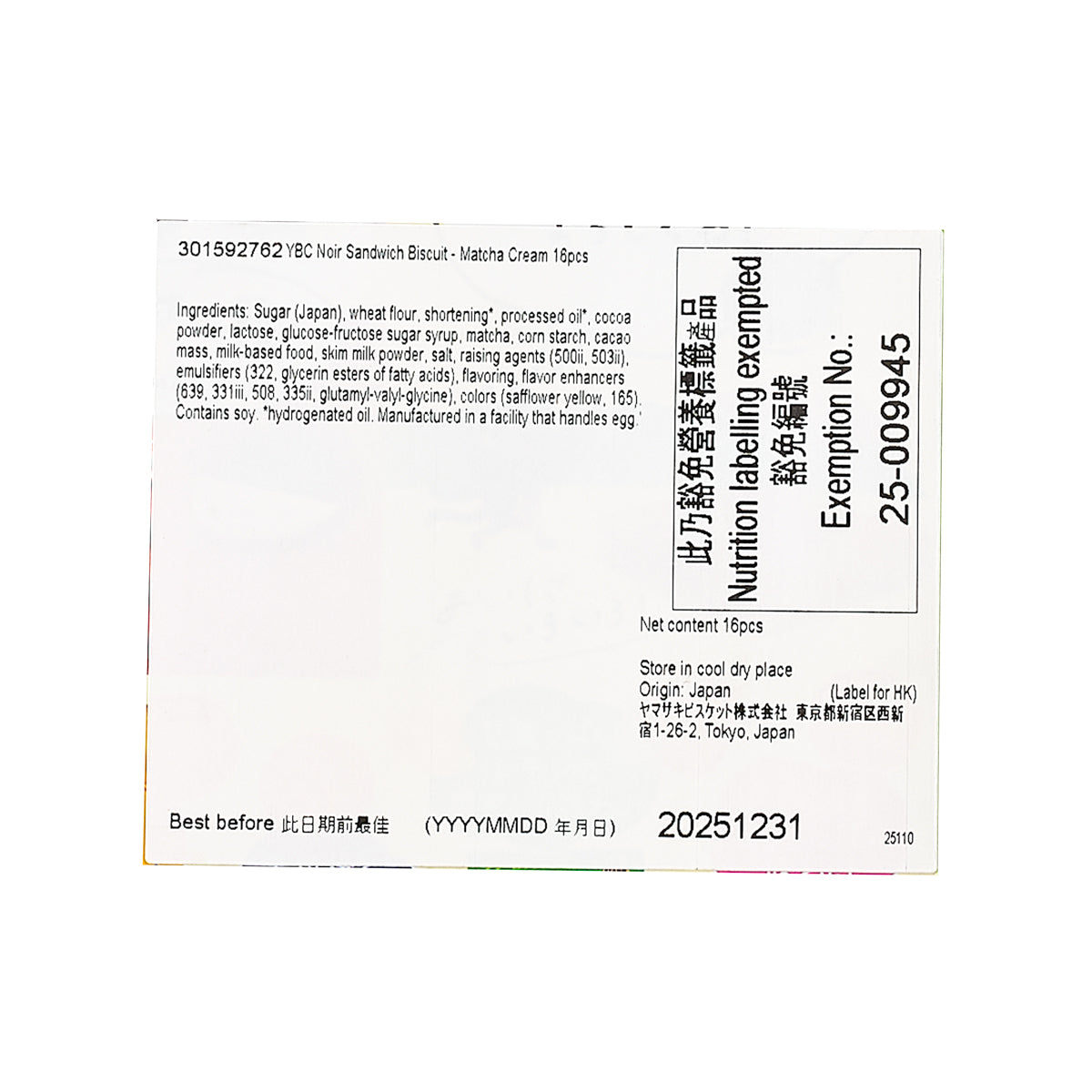 YBC Noir Sandwich Biscuit - Matcha Cream  (16pcs)