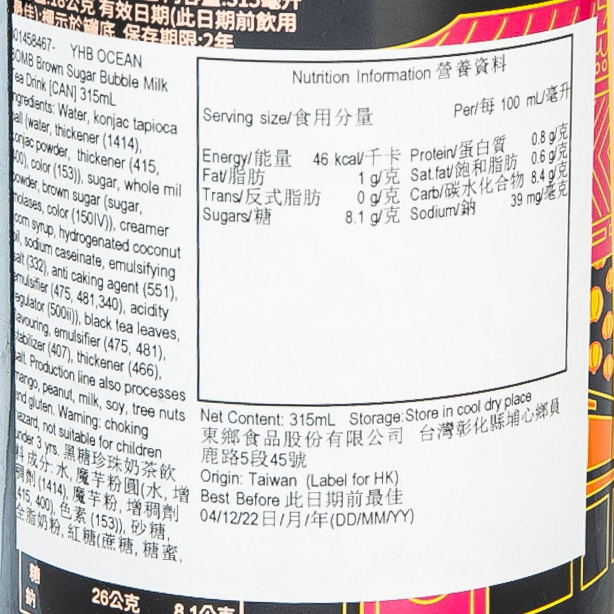 YHB OCEAN BOMB Brown Sugar Bubble Milk Tea Drink [Can] (315mL)